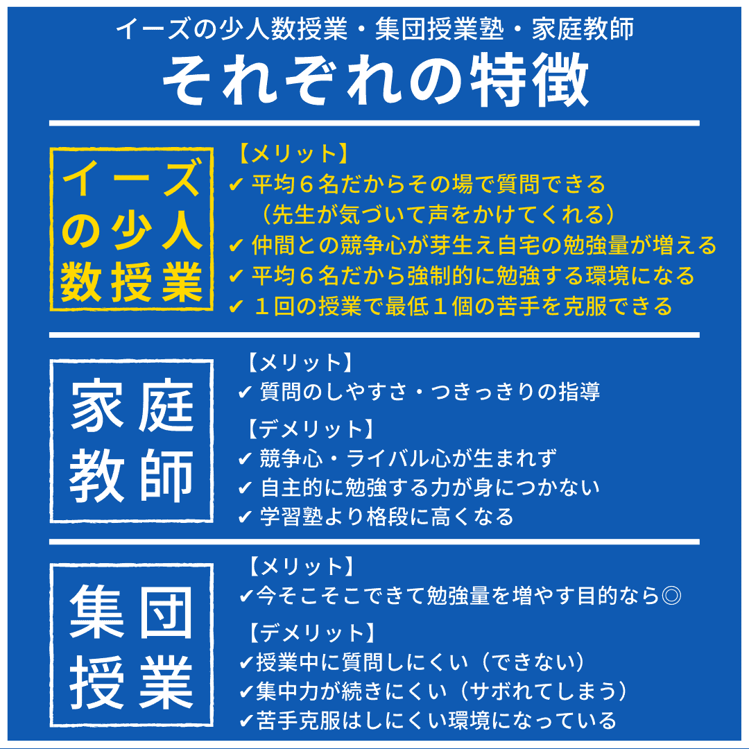本気でお子さんの学力を伸ばしたいなら、イーズの2週間の無料体験授業(数学以外も全科目体験出来ます!)を受けてみてください。